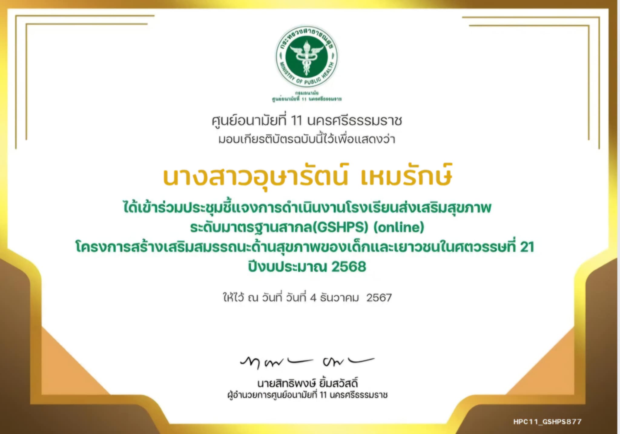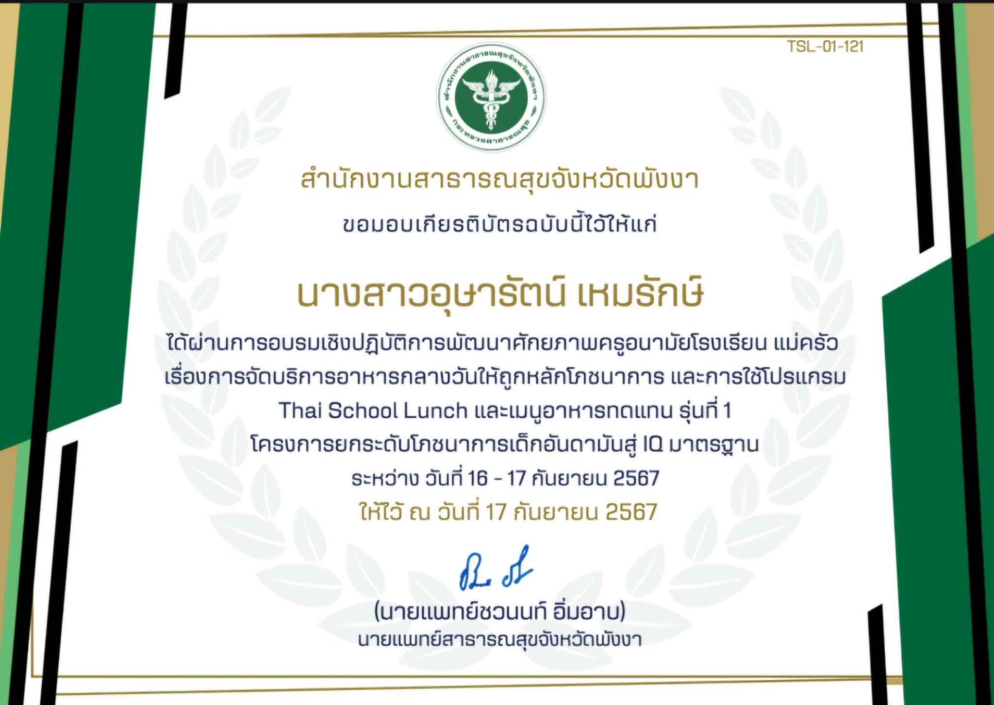อบรมเชิงปฏิบัติการการพัฒนาศักยภาพครูอนามัยโรงเรียน แม่ครัว เรื่องการจัดบริการอาหารกลางวันให้ถูกหลักโภชนาการและการใช้โปรแกรม Thai School lunch |