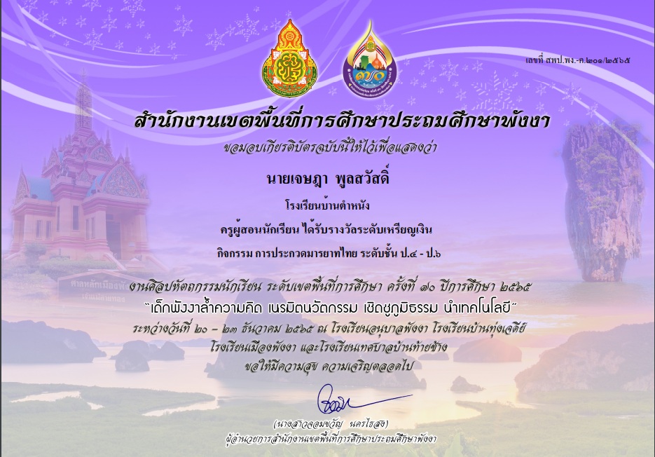 ครูผู้สอนนักเรียน ได้รับรางวัลระดับเหรียญเงิน กิจกรรมการประกวดมารยาทไทย ระดับชั้น ป.4-6 ปีการศึกษา 2565